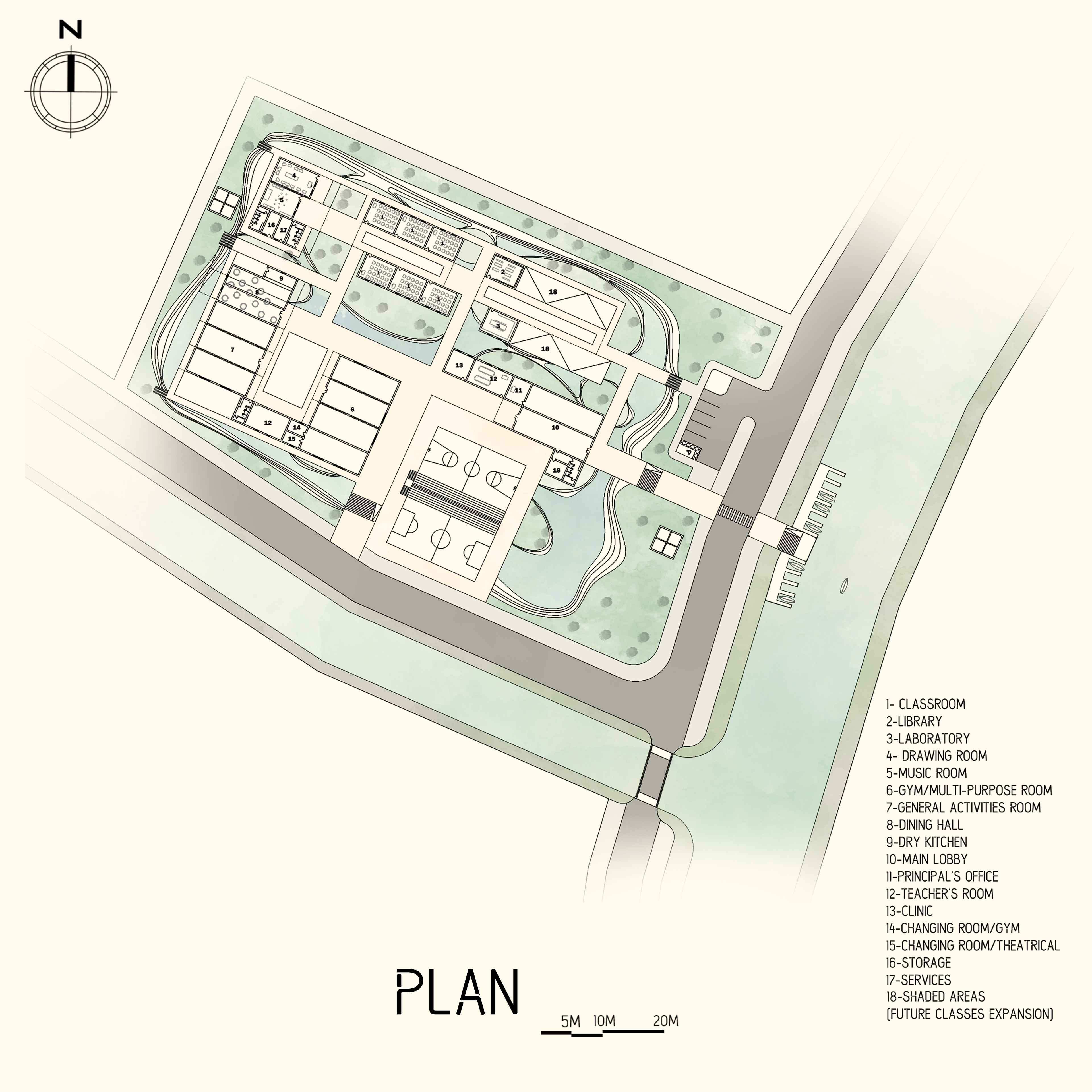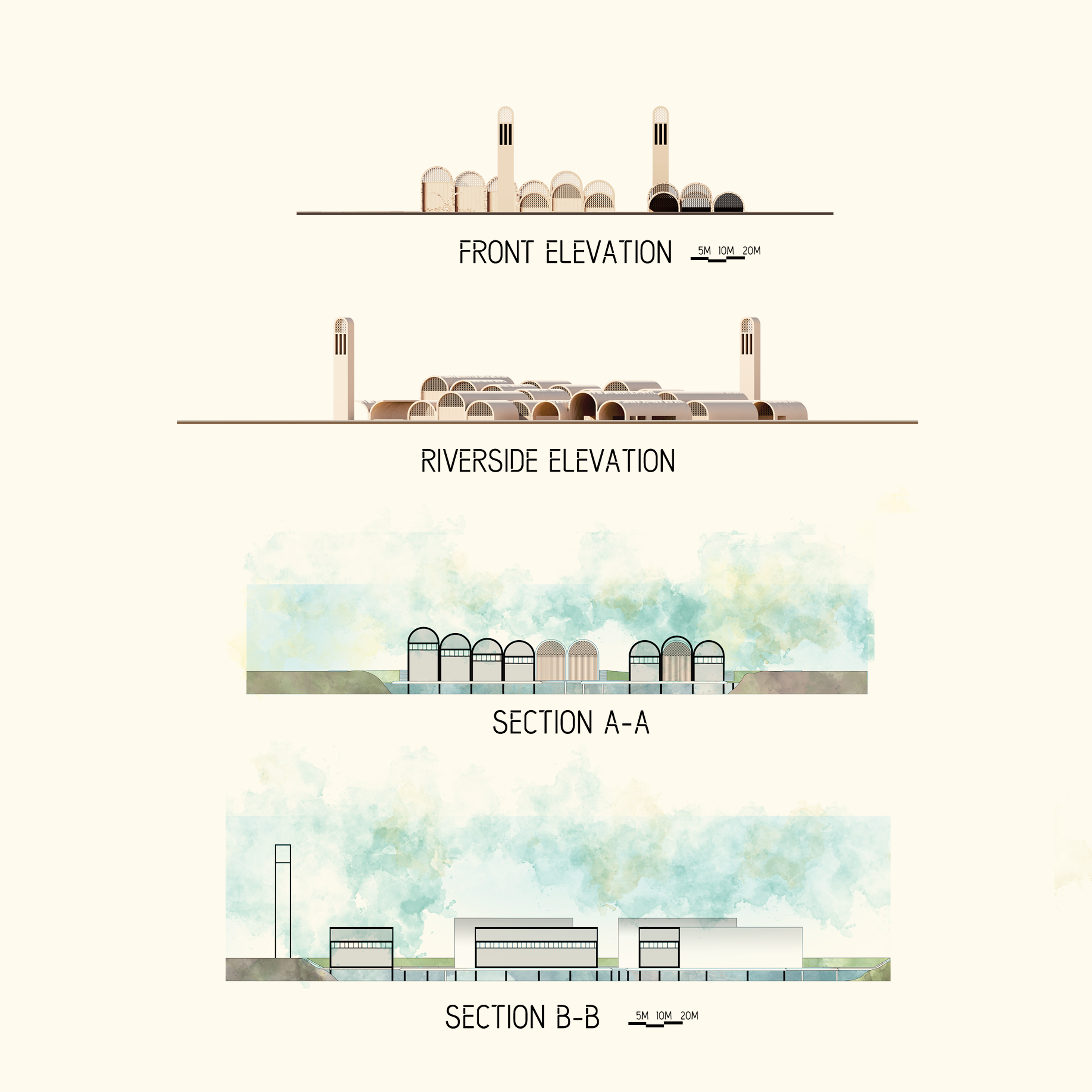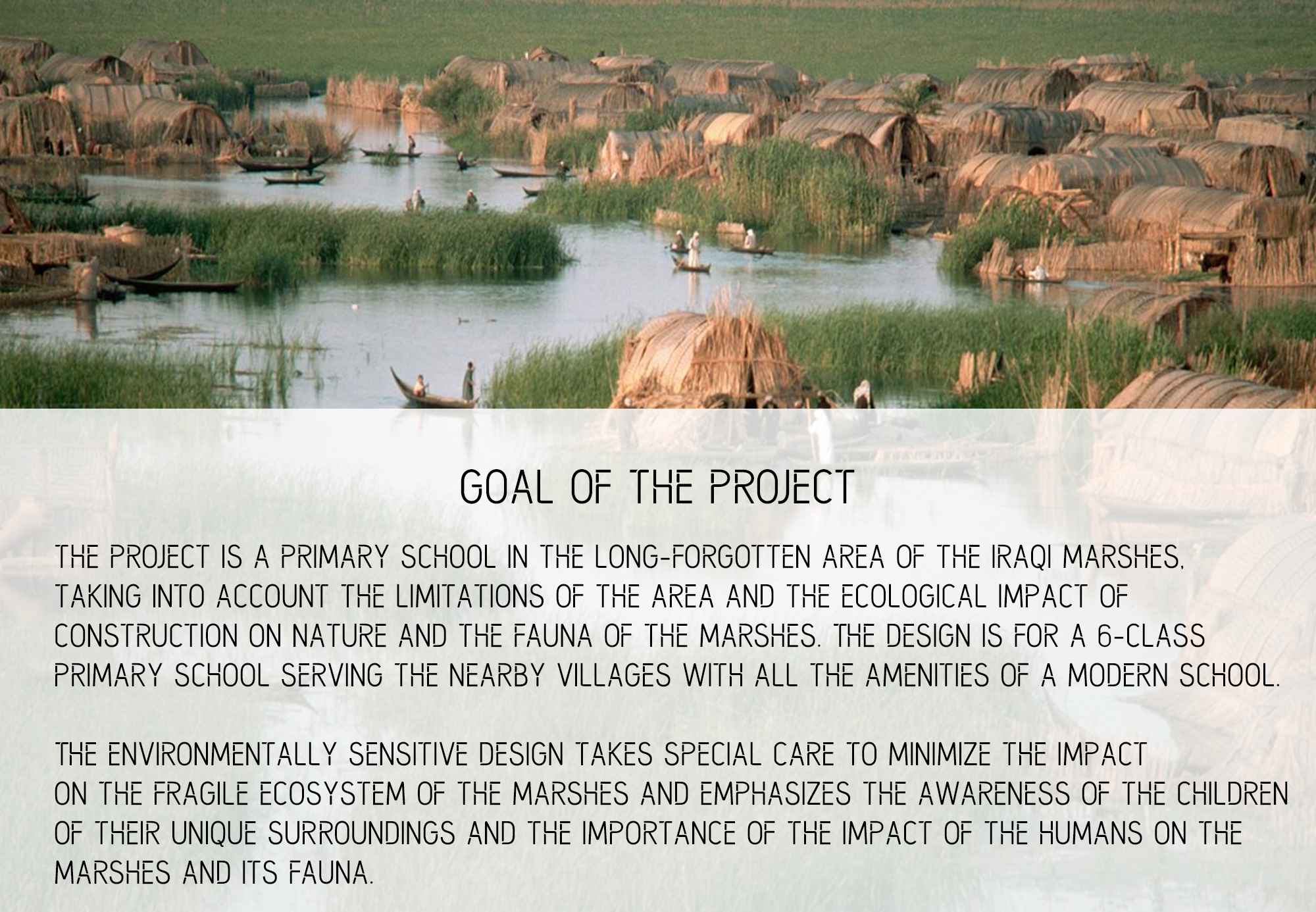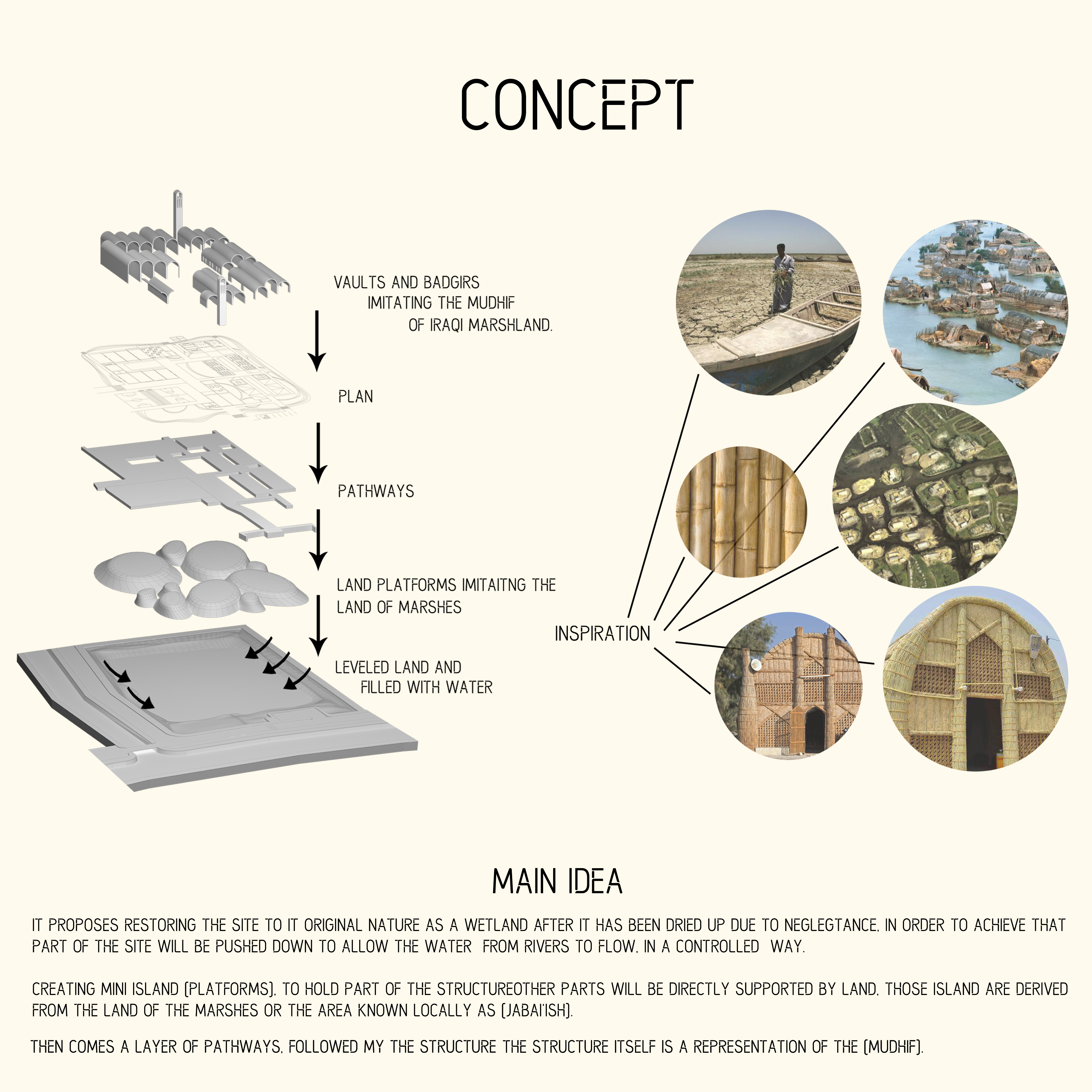 Through revealing the regional ecological processes while celebrating the Modern and contemporary Arab Art, this project strives to promote cultural and environmental literacies at multiple levels. These processes are matched in the material choices, the program adjacencies, and the overall concept by providing a design that characterizes the values and identity of the place and serves as an integral part of the working ecological systems for the benefit of the users of Barjeel Art Foundation.